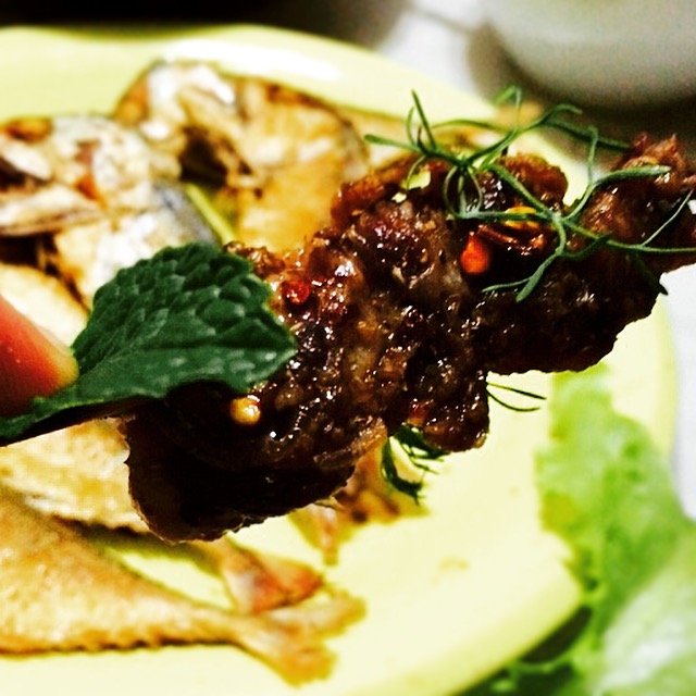 After rehearsal on Tuesday, the entire Love Show team (interns and all) went to have a special dinner at May’s father’s house in Mei Tang. The meal was rustic Northern Thai cuisine and included larb moo (both cooked and raw), namprick (chili paste), saa (beef tar tar) and gang tom kai (sour chicken curry. All of it, especially the pork tar tar in pig blood) was magnificent.