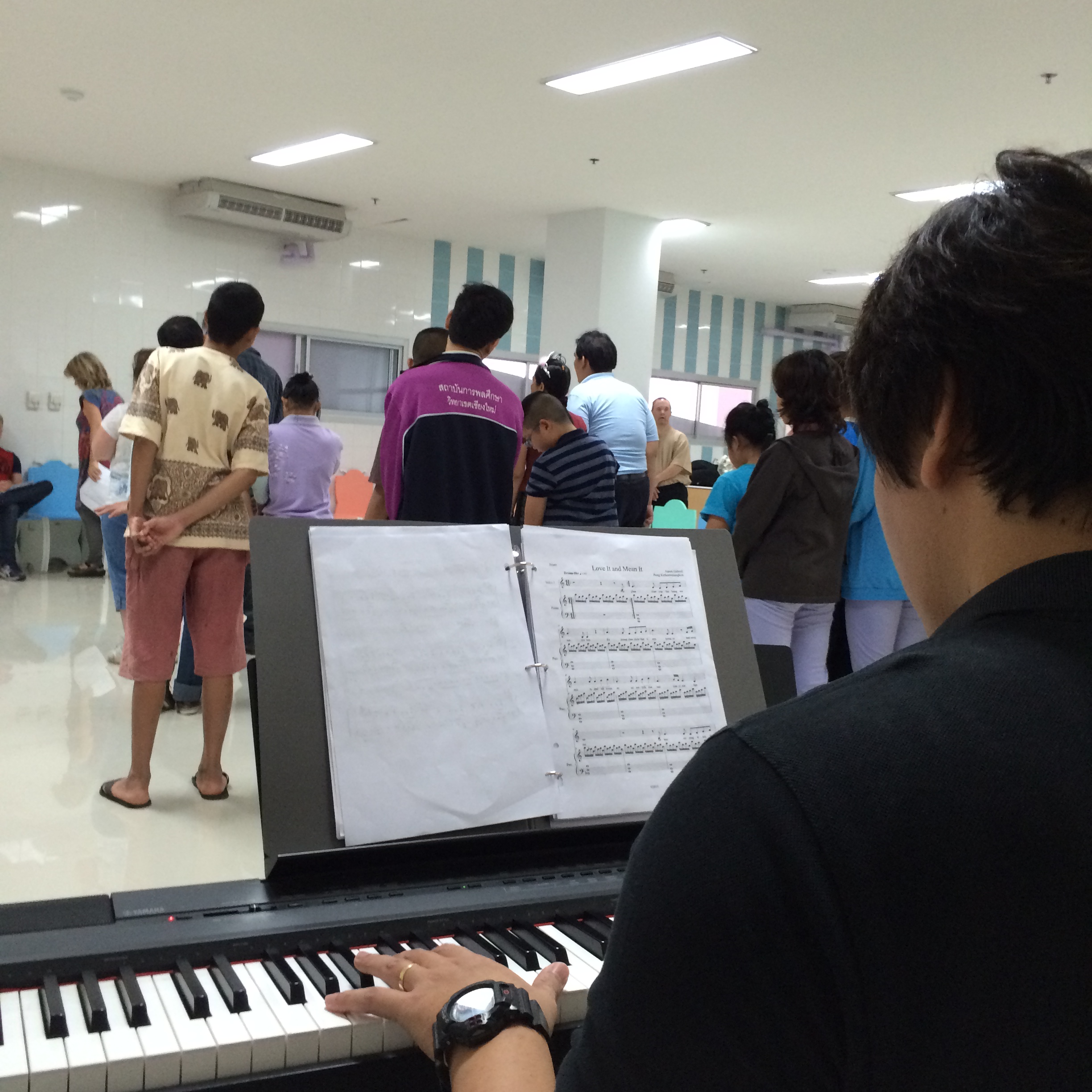 Last Saturday I returned to Dulabhatorn Foundation where I lead a community-driven song creation session. The students chose to write a song about dancing. We only had an hour-and-a-half, but they reached their goal with enthusiasm. The Dulabhatorn staff then wrote some fun guitar chords and the students were able to dance and sing their way out the door. You can listen Dancing Kids by clicking here.