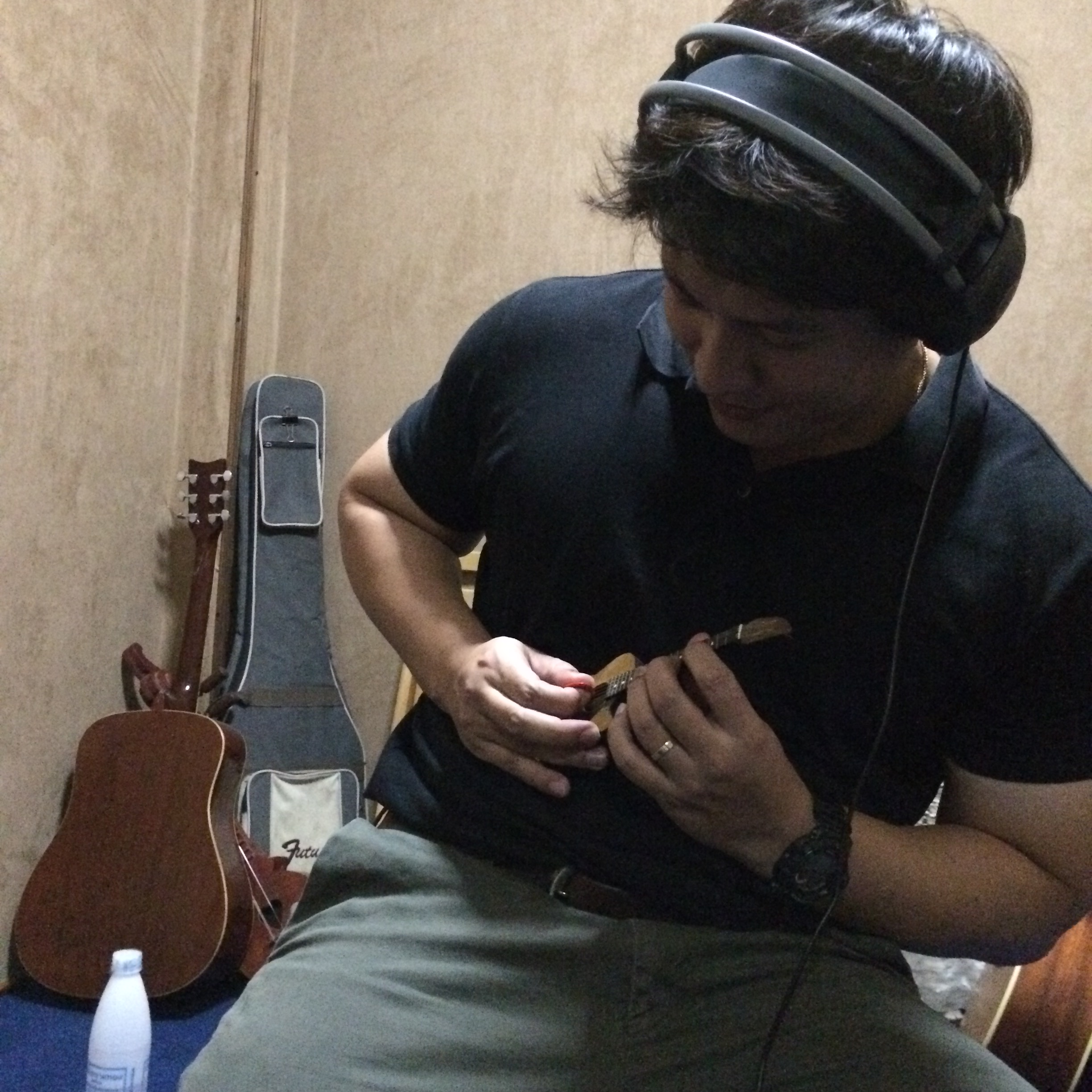 On Wednesday, we added the microphones. There’s nothing quite so special as a lot of children experiencing microphones in a resonant space for the first time. And nothing quite so peaceful as the end of that rehearsal. After rehearsal, Pong and I dashed off to his friend Pon’s recording studio to lay down some tracks of the show before I left.  In the next months, they will be producing a full recording of the show.