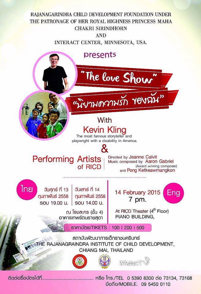 A weekly update of the activities of artists from Interact Minnesota (Artistic Director Jeanne Calvit, Story-teller Kevin Kling, Actors Lhea Jeagar and Dominic Zeman and myself) as we create musical theater with the staff and artists at RICD/Interact Thailand.  Interact Theater’s mission is to create art through radical inclusion that changes society’s view of disability.
